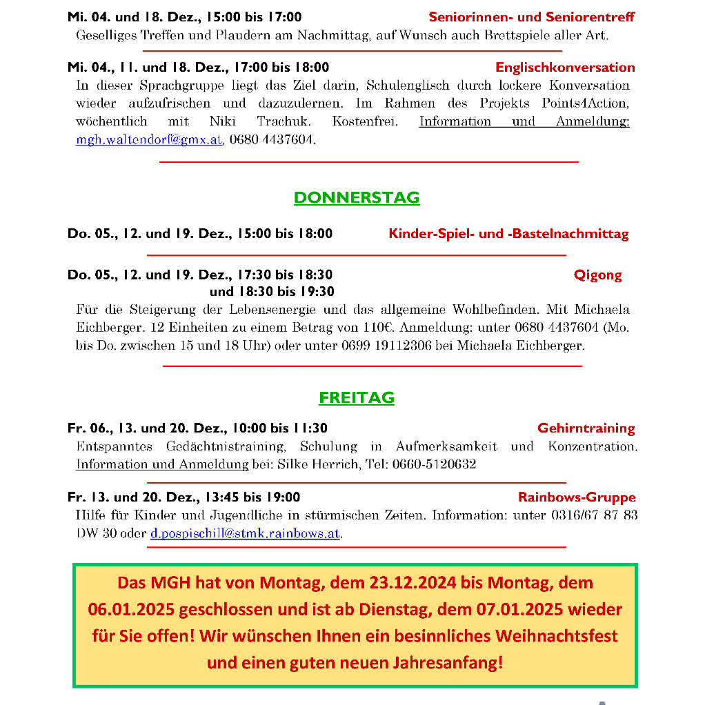 Dezember 2024 - Mehrgenerationenhaus Waltendorf
