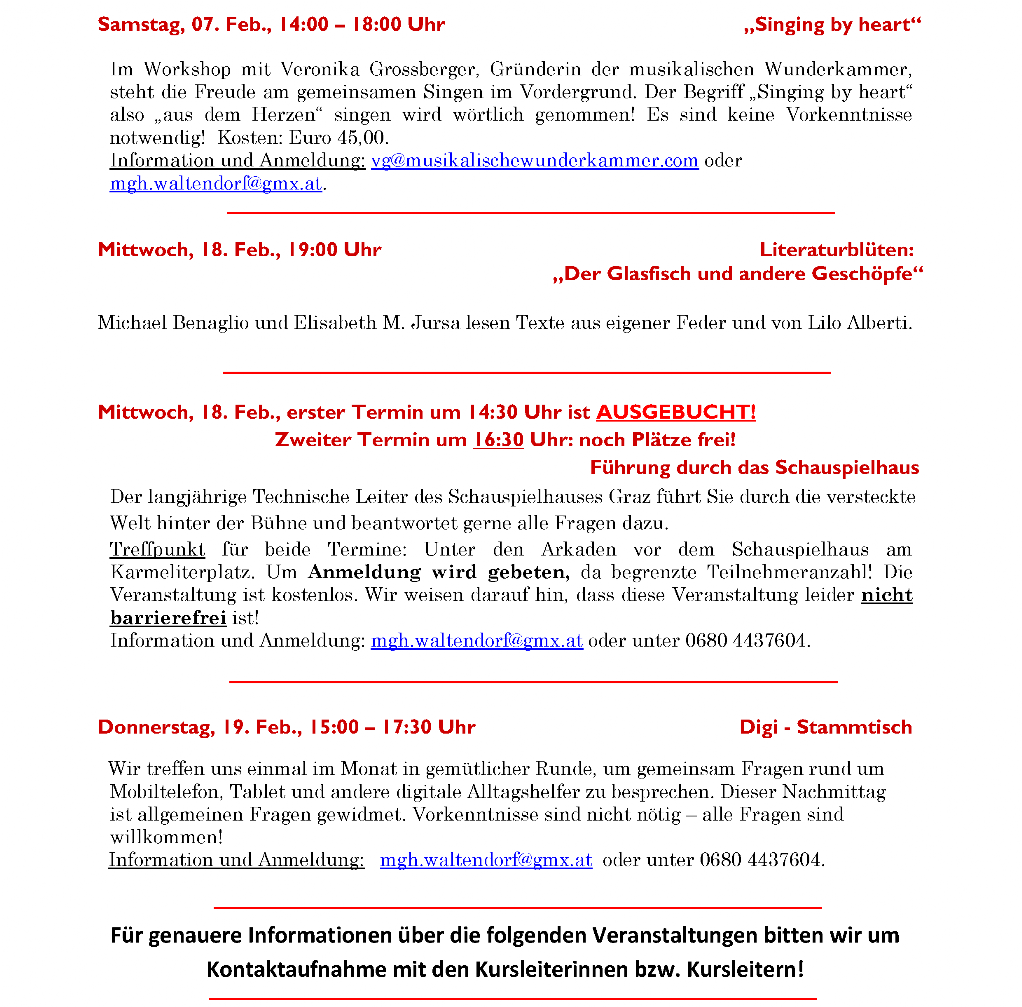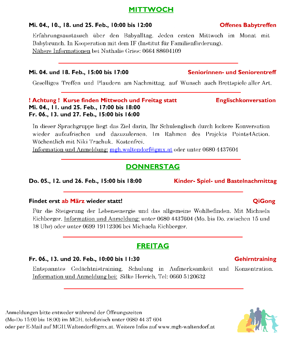Das feststehende Wochenprogramm bleibt vom wechselnden Monatsprogramm unberührt aufrecht.