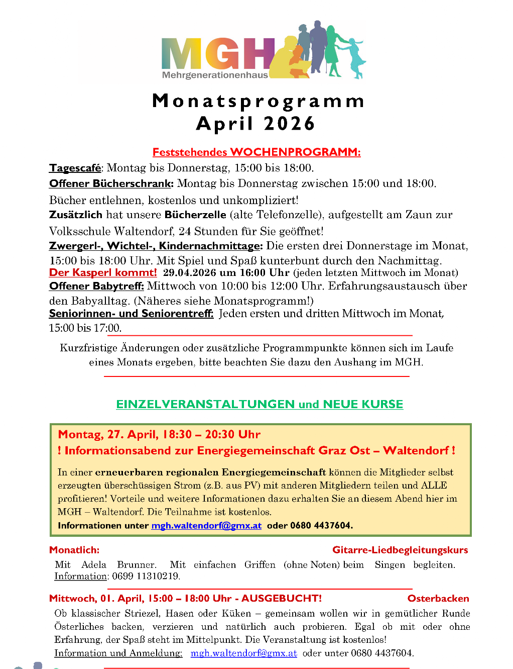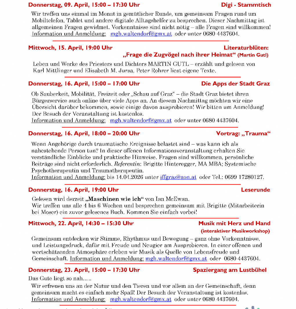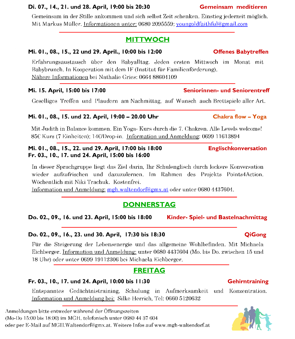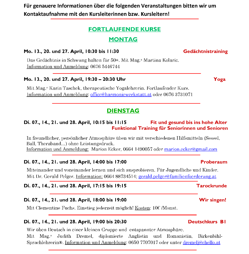 Das feststehende Wochenprogramm bleibt vom wechselnden Monatsprogramm unberührt aufrecht.