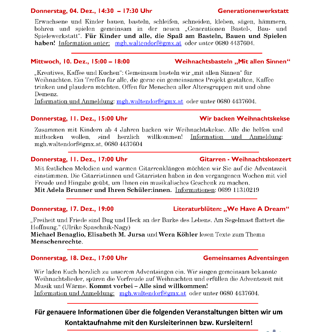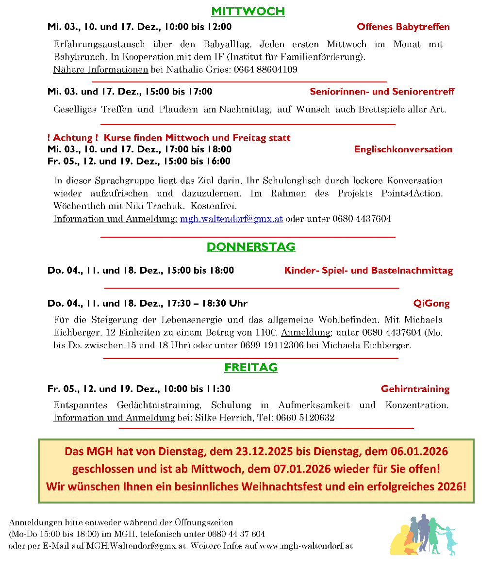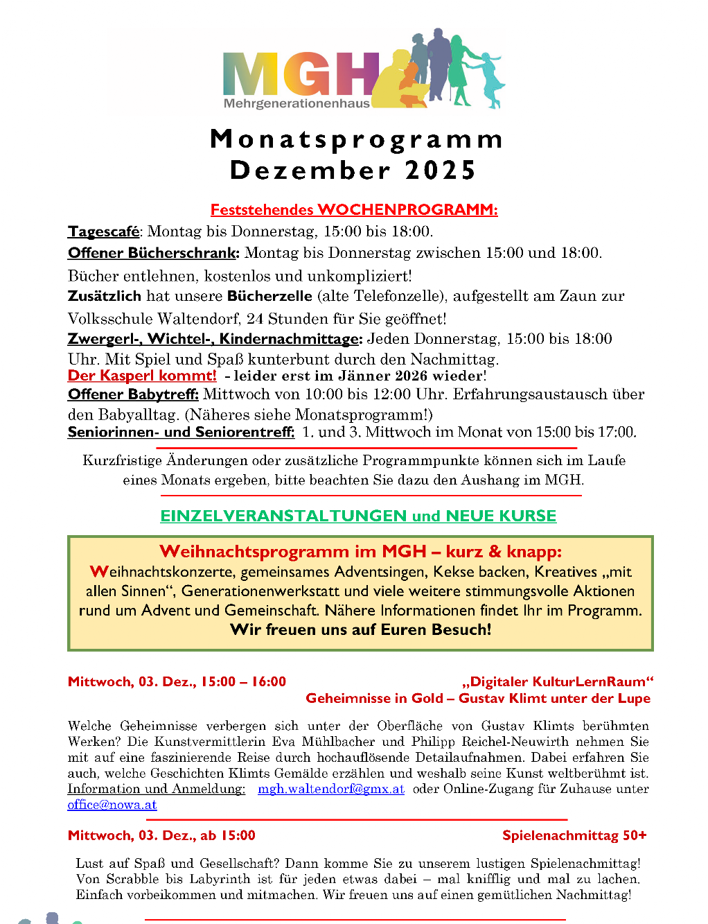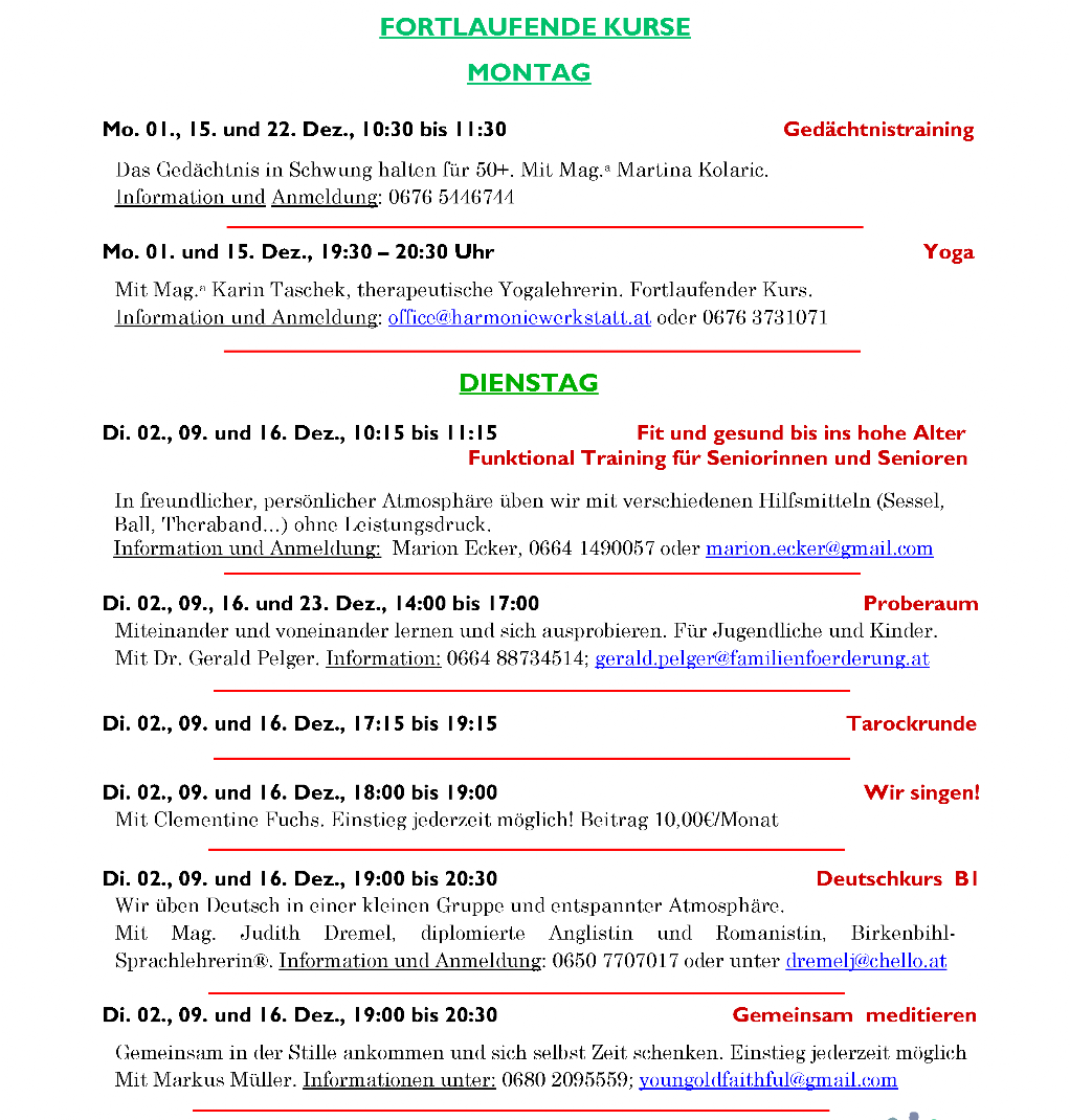 Das feststehende Wochenprogramm bleibt vom wechselnden Monatsprogramm unberührt aufrecht.