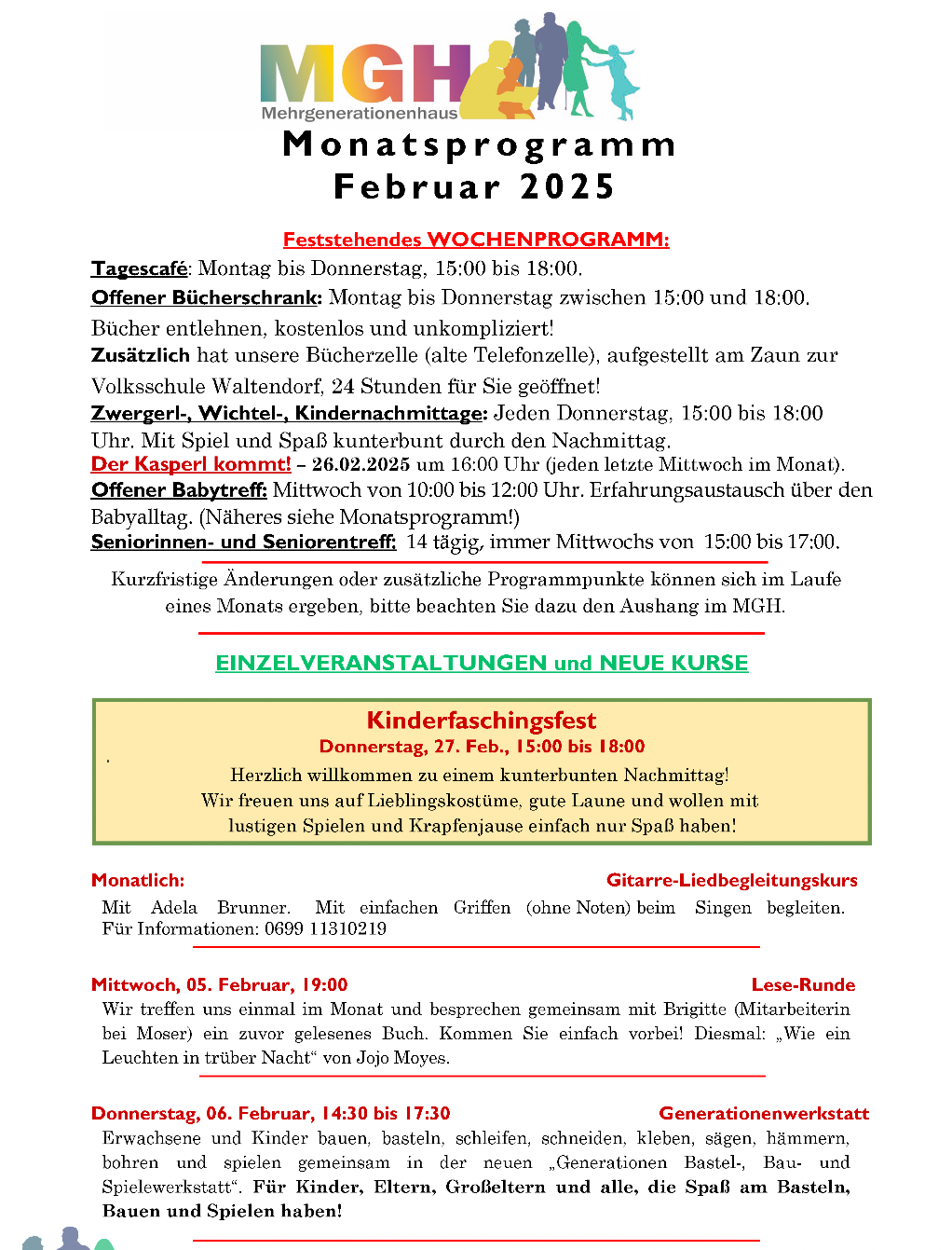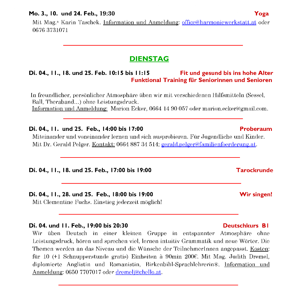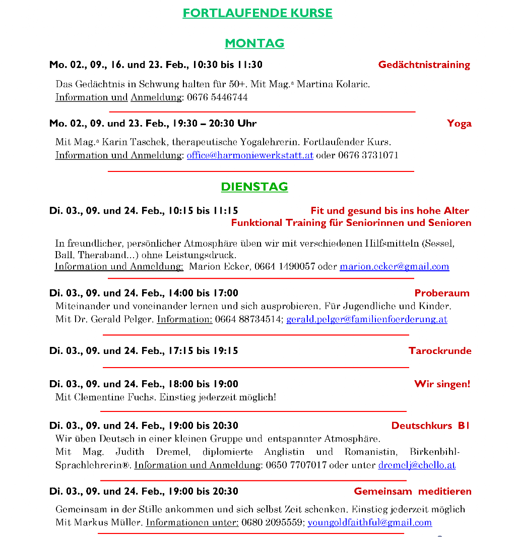 Das feststehende Wochenprogramm bleibt vom wechselnden Monatsprogramm unberührt aufrecht.