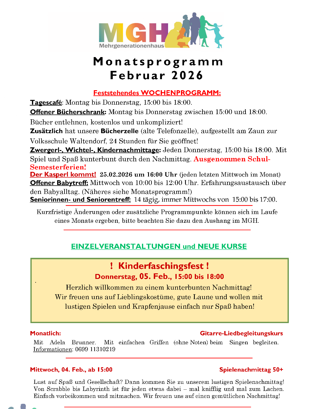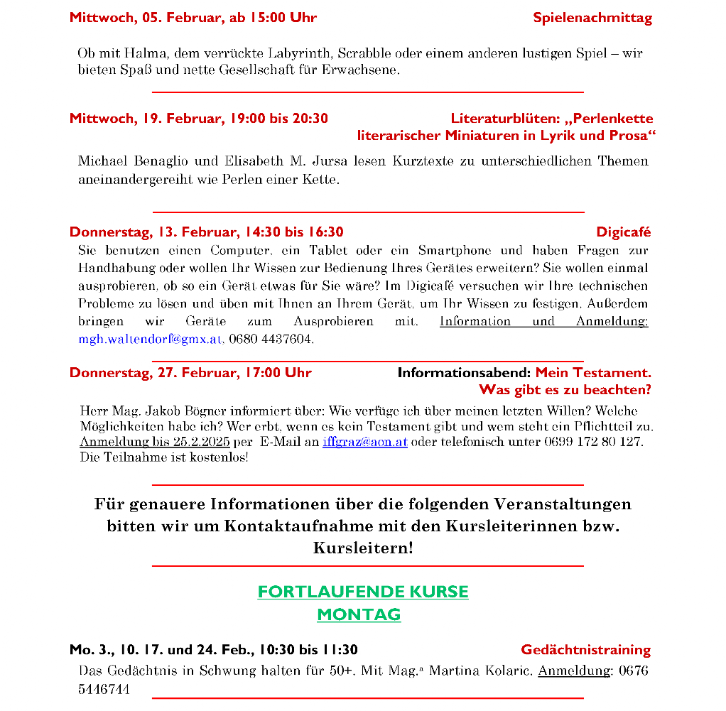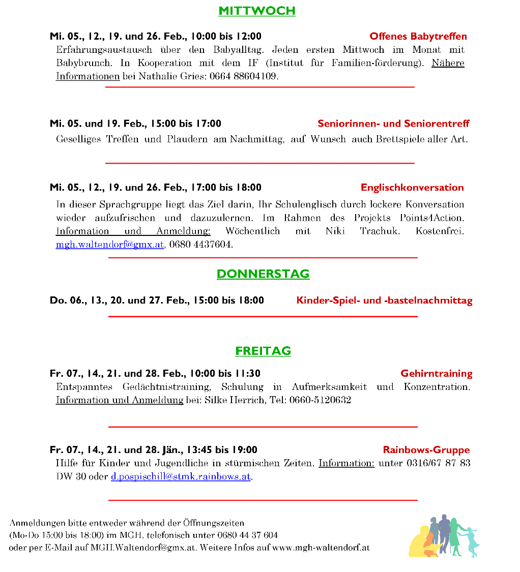Das feststehende Wochenprogramm bleibt vom wechselnden Monatsprogramm unberührt aufrecht.